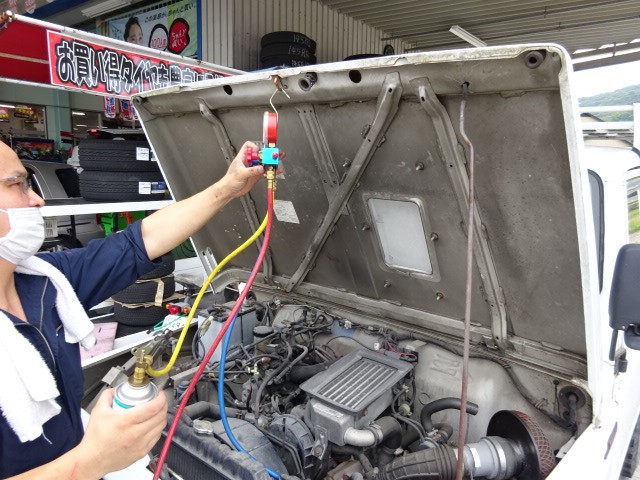 JA11ジムニーのお客様は、オイル交換とエアコンが利かないので、ガス注入