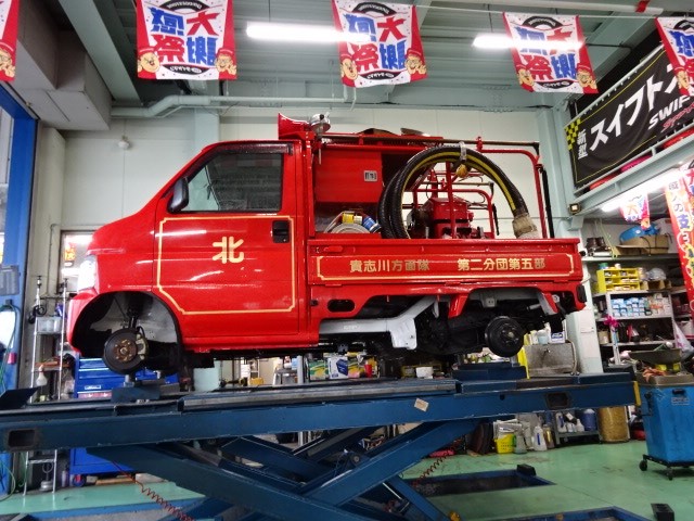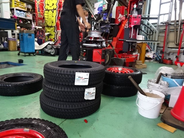 近所の消防団のアクティにスタッドレスタイヤお買い上げありがとうございます。