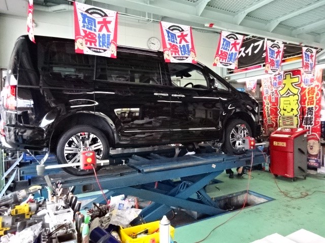 業者様からの依頼で、車高を上げた新車のデリカD5のアライメント調整作業です。