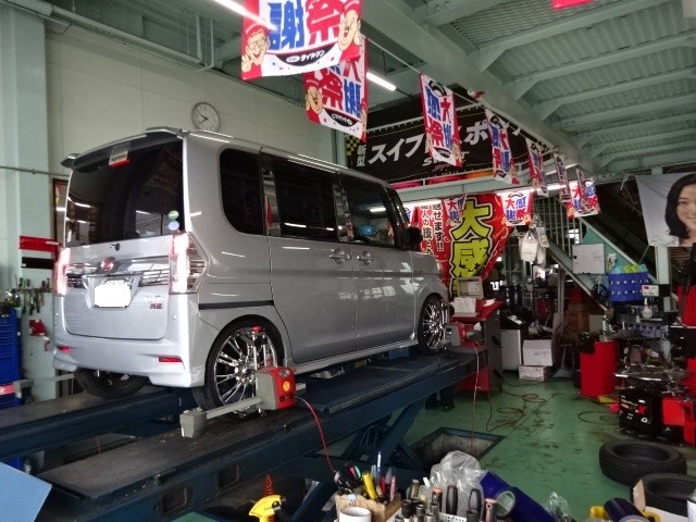 業者様からの依頼で、タントカスタムRSのアライメント調整