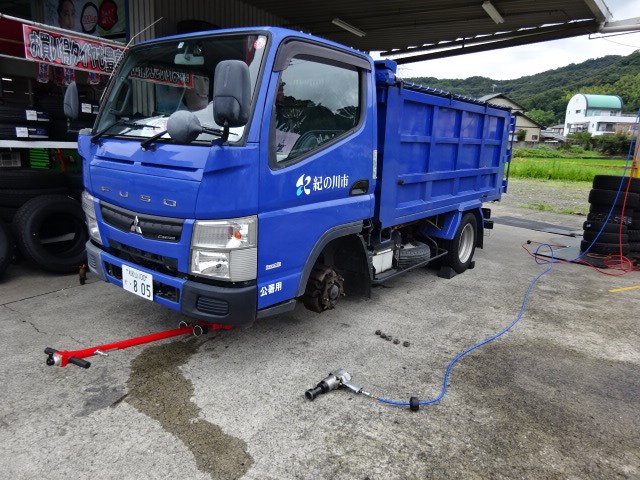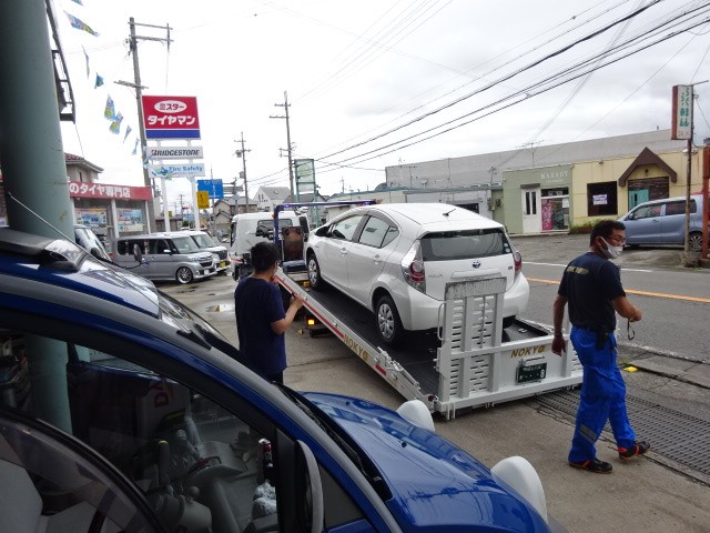 アクアのお客様、パンクでロードサービスに運ばれてきましたよ。