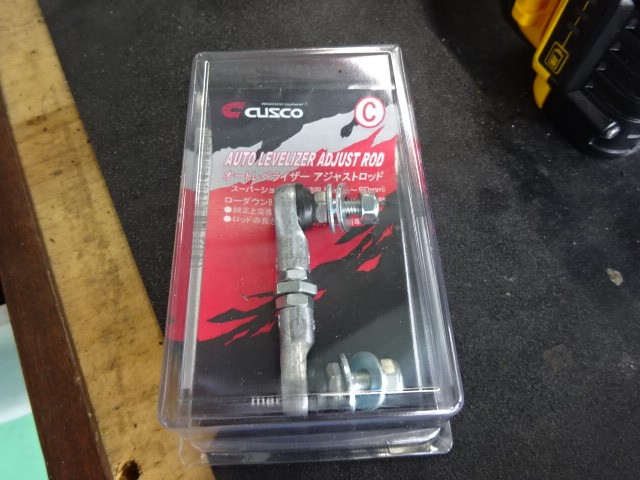 先日 車高調を組ませて頂いたレボーグにクスコのオートレベライザーアジャストロッドを組付けます。