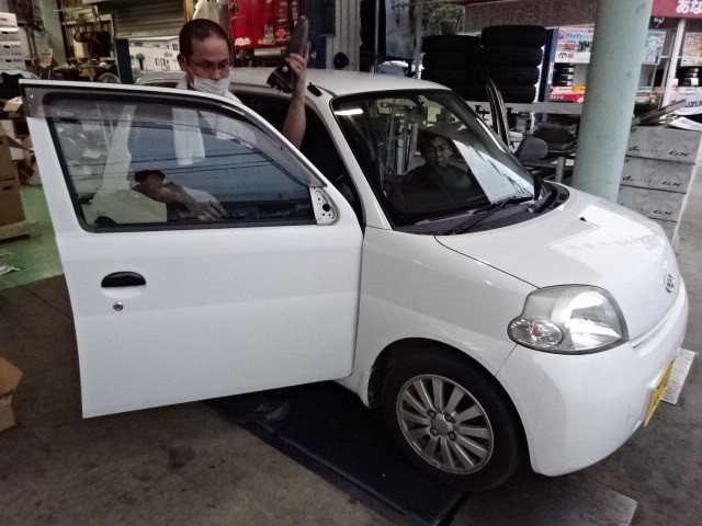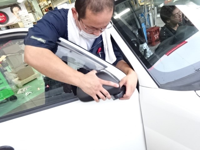 先日納車した、エッセ君ドアミラーが、劣化しているので、新品交換