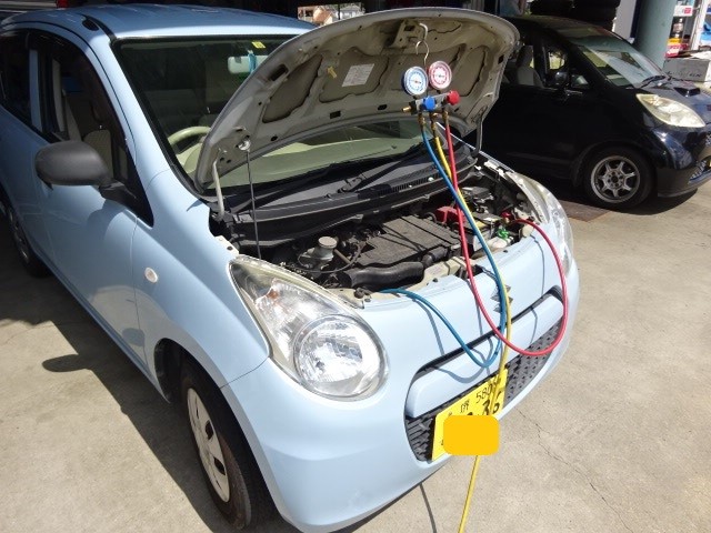 飛び込みで堺ナンバーのアルトさんエアコンの効きが悪いそうでACガス注入