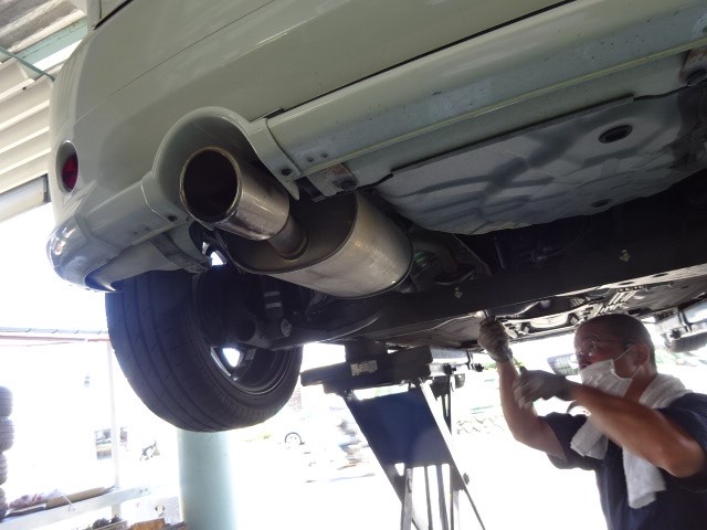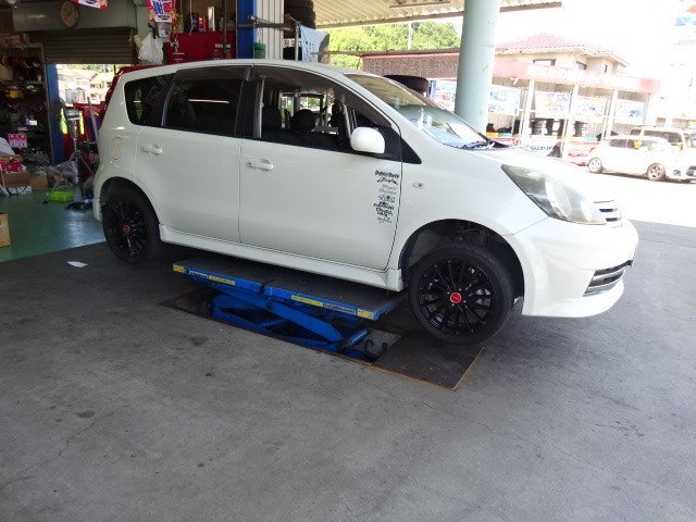 E11ノートのお客様 HKSのサイレントハイパワーマフラーの取り付け作業です。