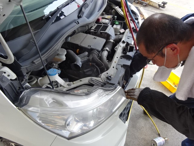 10万km走行のスペーシア 「エアコン効かない」で飛び込んで来ました。