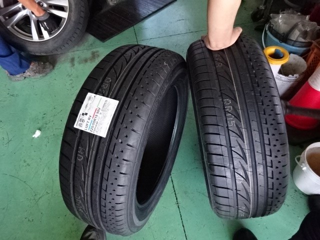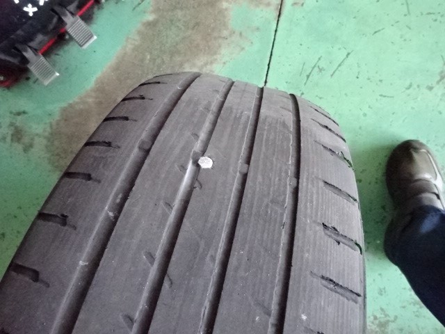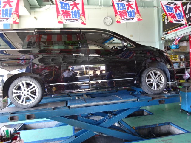 E52エルグランドのタイヤ交換です。何やらパンクの警告ランプが付いたそうで。