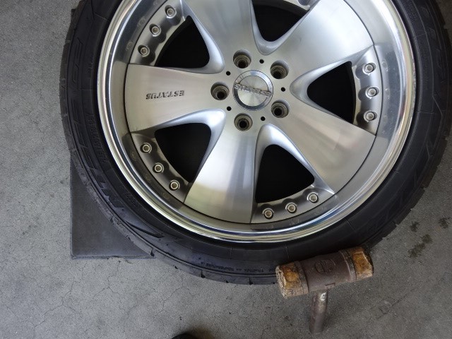 後ろ2本は、ひっくり返します。リムが曲がってるので「しばいてくれ」と頼まれました。