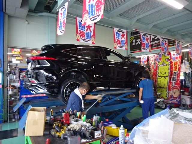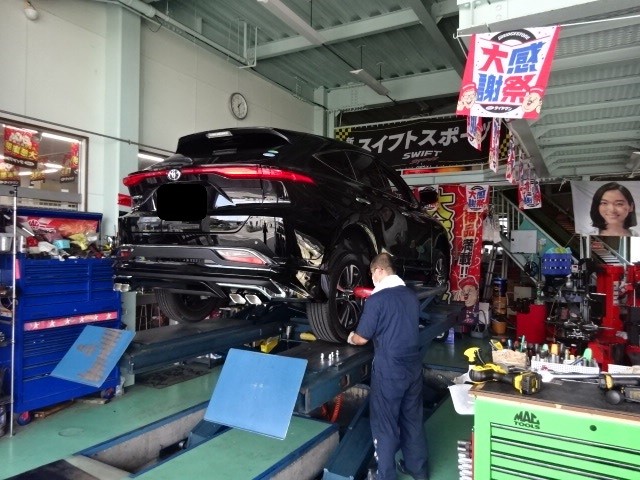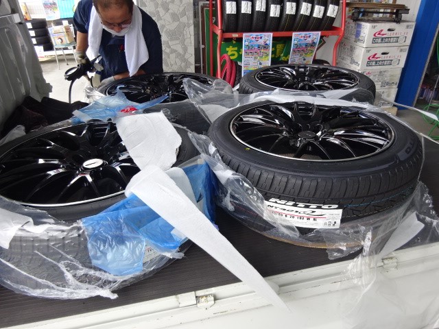 80ハリアーのお客様、持ち込みホイールセットの脱着作業