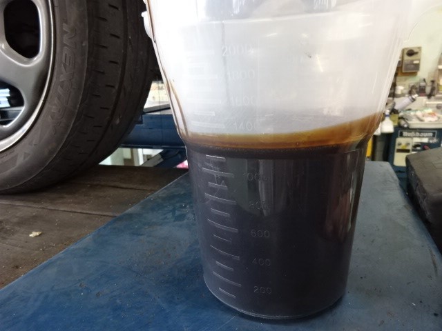 1.2Lしか入っていませんでしたよ。取り合えずフラッシングしときます。整備は後日に・・・