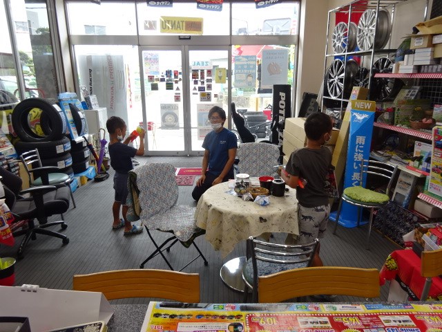 新車の説明の間ちびっ子たちの接待に追われてます。