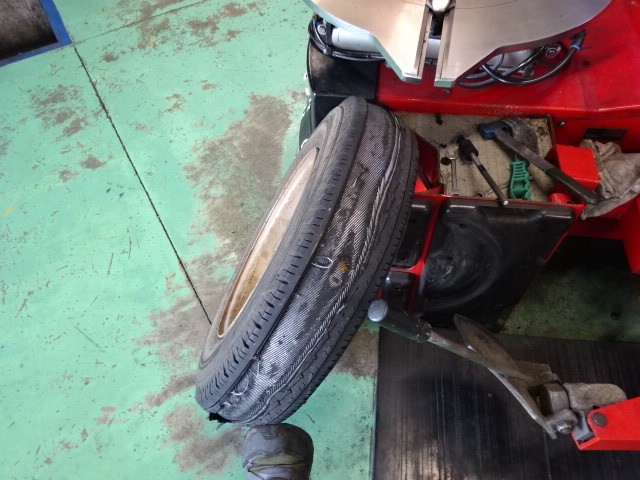 朝一番にお得意様からの依頼が有り。不動車のタイヤの脱着
