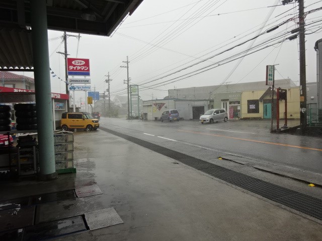 突然の豪雨に見舞われ作業中断