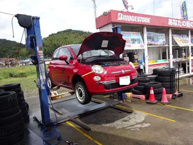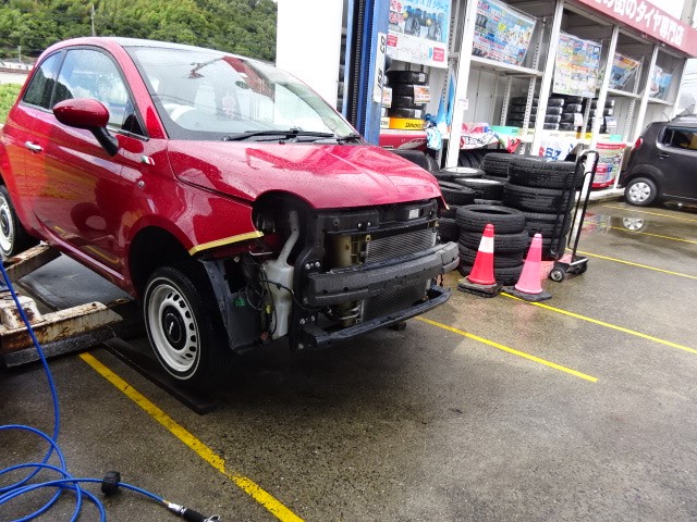 雨の合間にFIAT500の作業開始