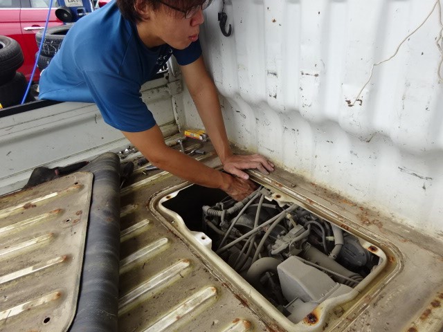 ハイゼットの車検整備です。リフトが詰まっているので・・・