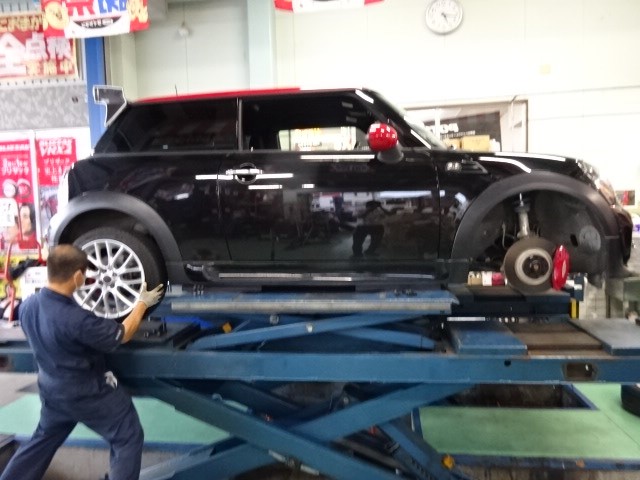ミニクーパーのローテーションとスペーサー取り付けです。