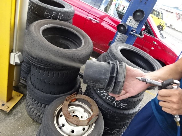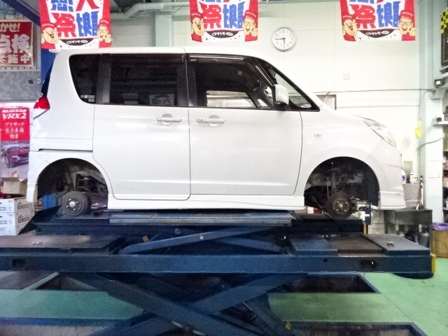 ソリオのお客様、連休に遠出されるそうで、タイヤ交換と各部点検