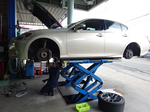 GS350のお客様、車高の微調整にアリの巣探しスタビライザーの工賃調べです。