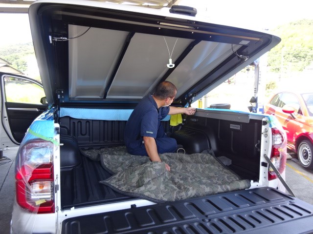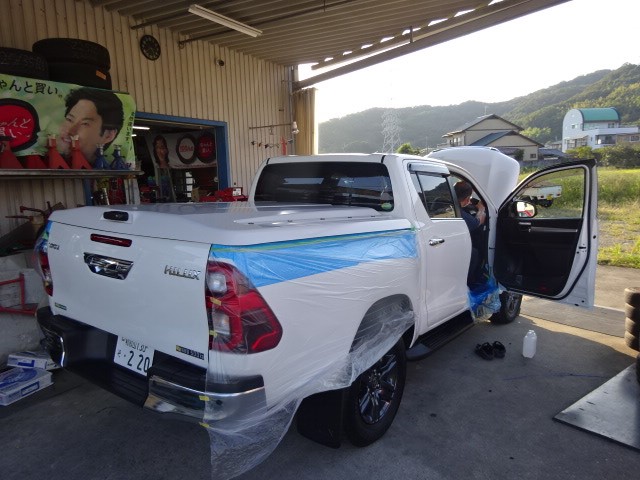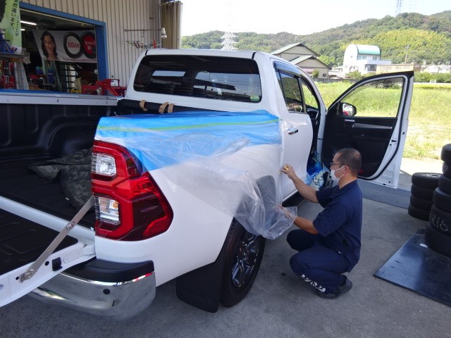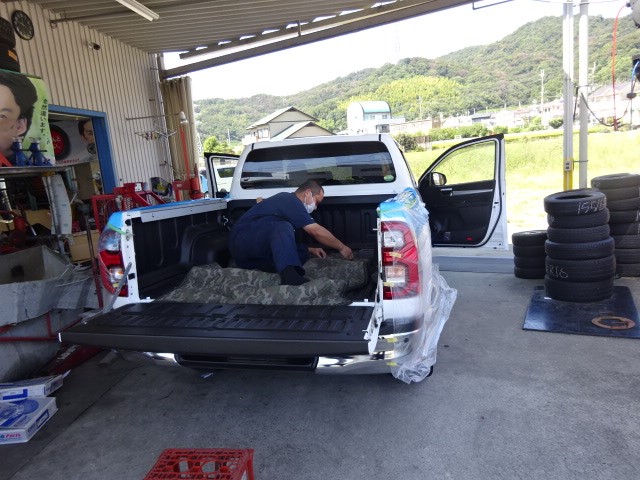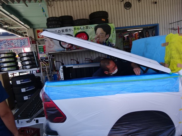 昨日 ベットライナーを取り付けたので、本日は、トノカバです。マスキングに保護シートまきまき