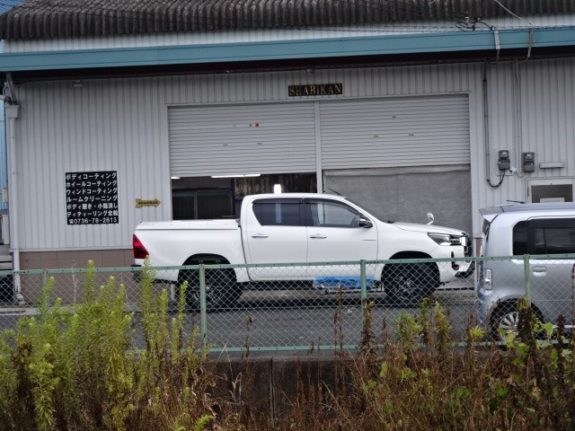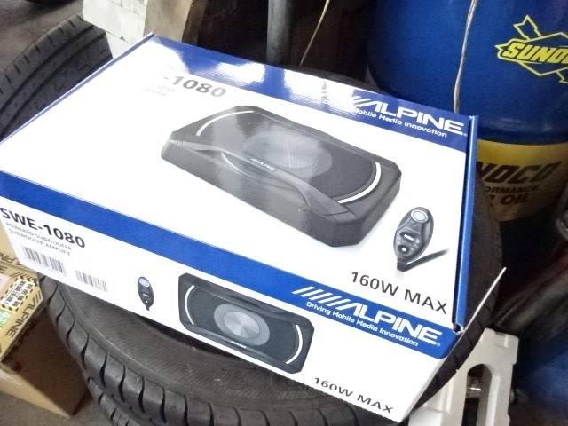 待ちに待ったアルパインのウーファーが、届いたので、駐車場から飛び出たハイラックスの仕上げにかかります。