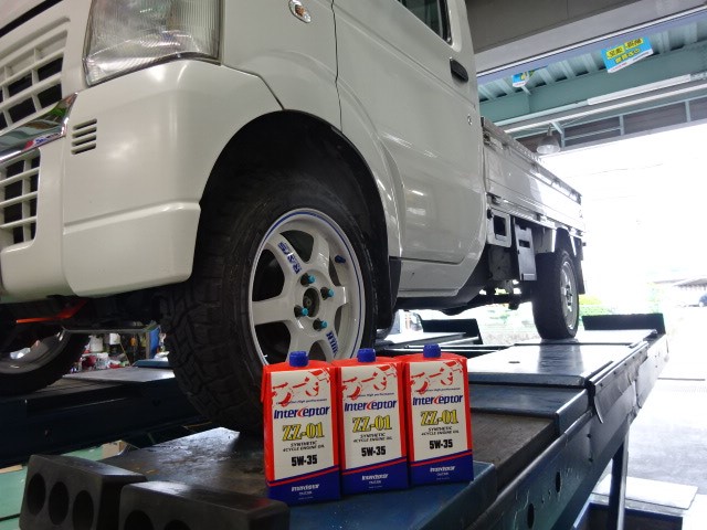 こちらの軽トラもオイル交換です。お待たせさせないように、頑張ります。