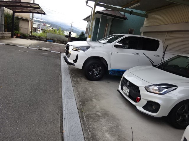 こんなに飛び出てると駐車場のセキュリティのスイッチが入りません・・・