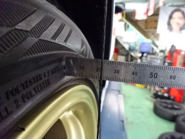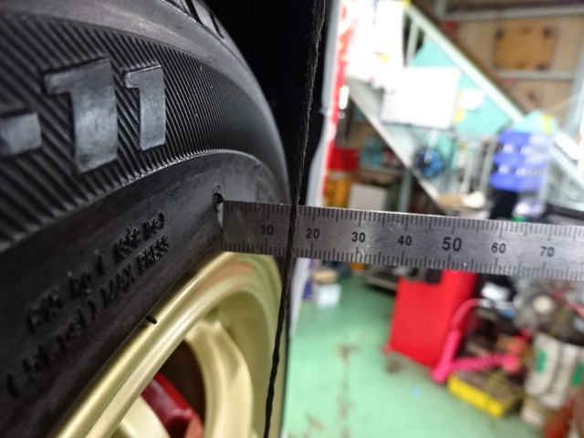 リアは、20mmの余裕が有りました。9.5Jの+42でギリなのかな?