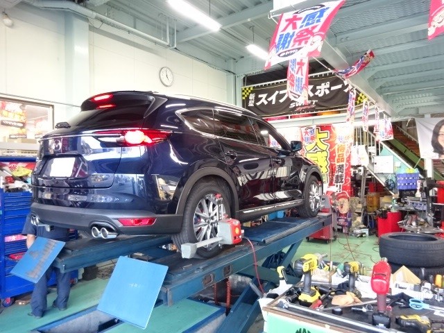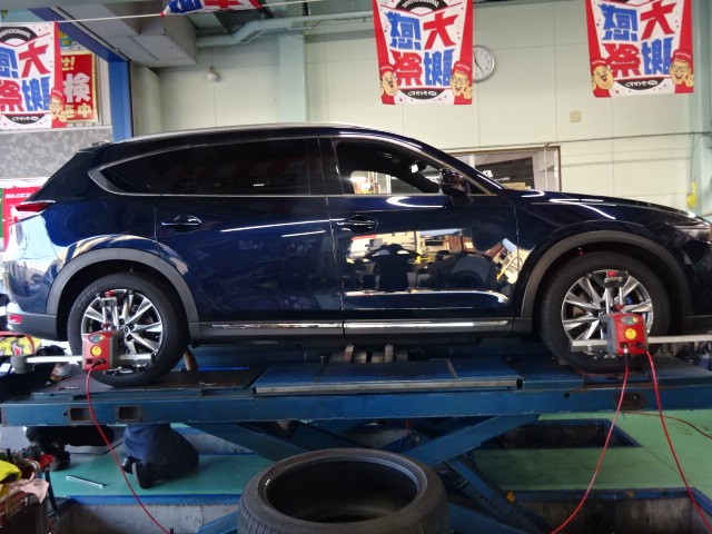 綺麗なCX9のアライメント調整でかい車ですね。