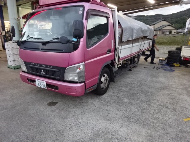 トラックのパンク修理です。