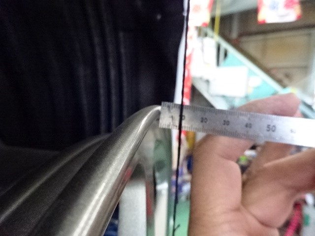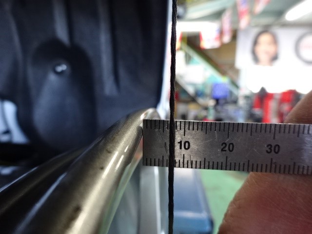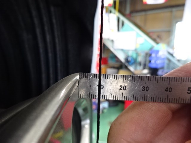 前回の測定結果でフロントは接地するとここから2mm出ますので実質フェンダーから8mmインですね。