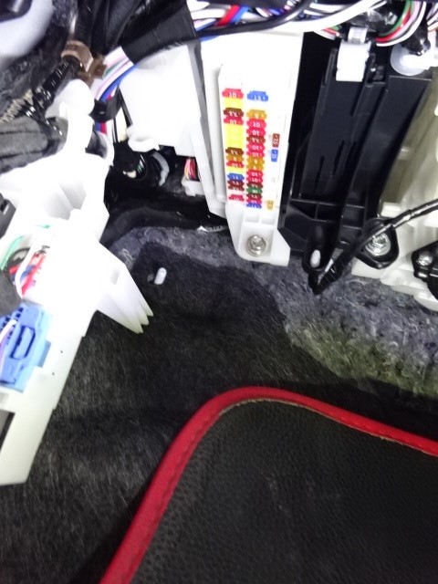 グローブボックスの下のカバーを外すと、ヒューズボックスが見えてきます。