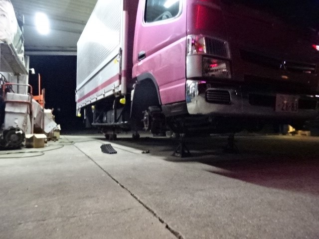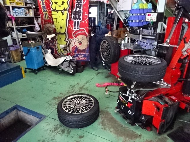 あまり使わないトラックのタイヤと車検で整備しているタイヤの交換です。