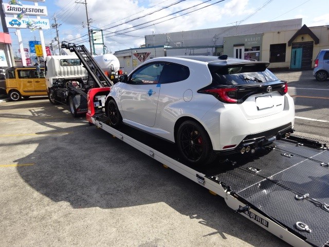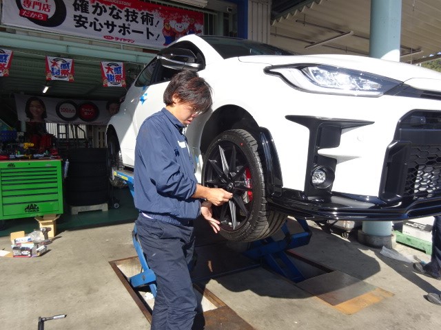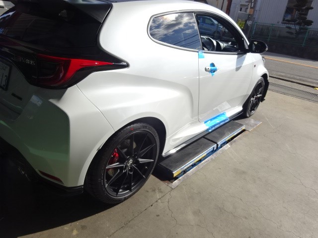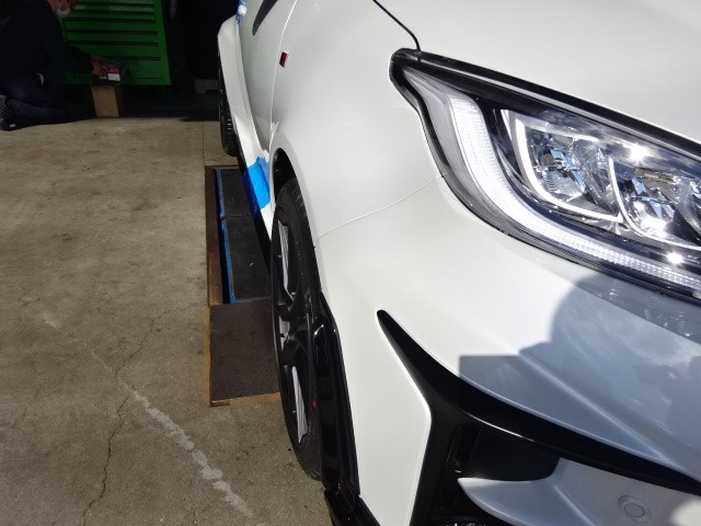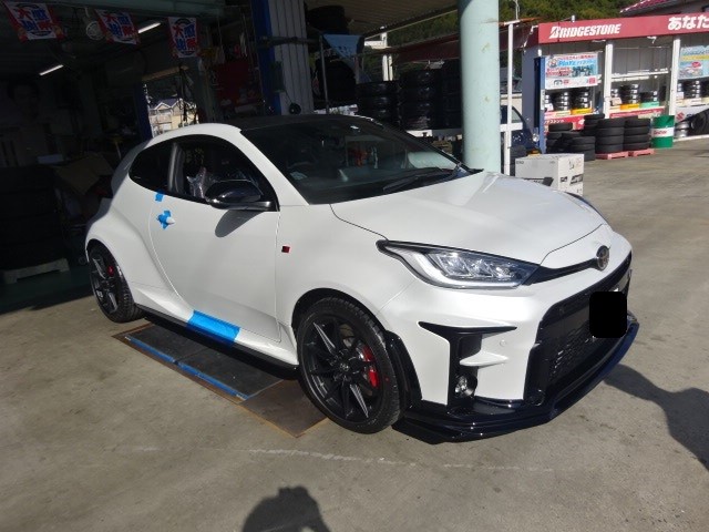 業者様からの依頼で、GRヤリスに20mmと25mmのワイドトレッドスペーサー取り付け作業です。