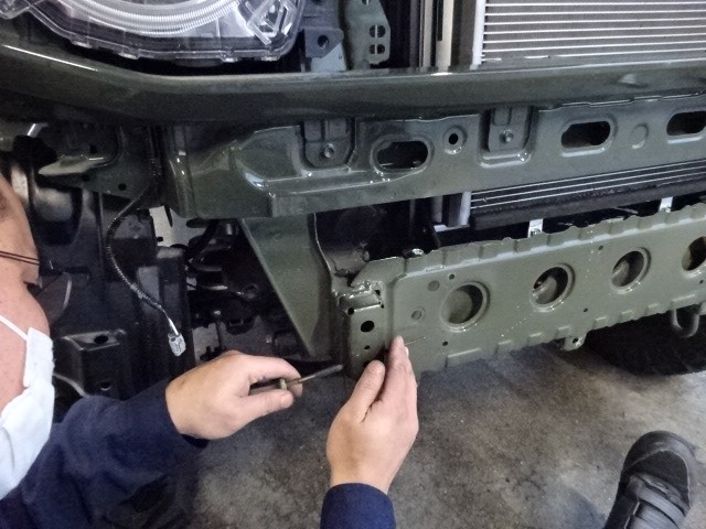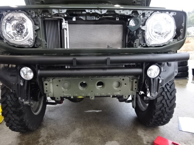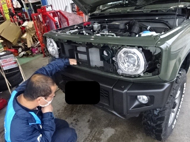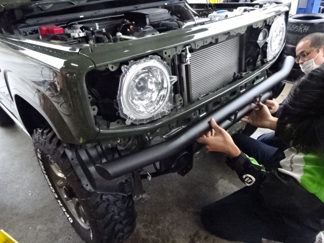 先日から預かっているJB64ジムニーに225/75R16を組むとバンパーに当たってしまたので、バンパーにが、来るまで、預かっていました。