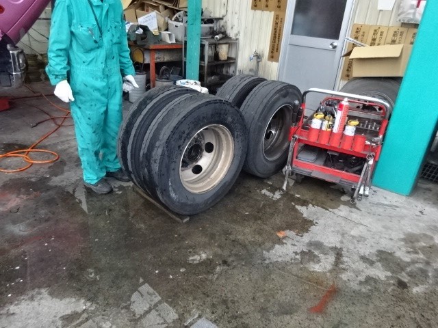 お得意様からの依頼で、不動の廃車するトラックのタイヤを車検に出している整備工場に配達して欲しいの事。