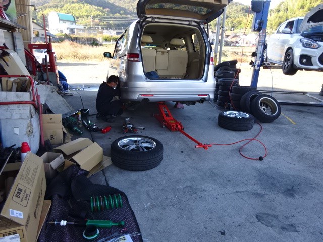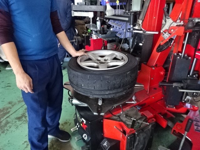 車高の調整と、サーキット走行用のタイヤの組み換えです。