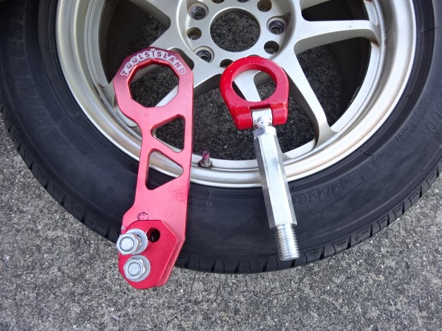 サーキット走行の必需品 牽引フックも取り付け。(出来れば使いたくないです)