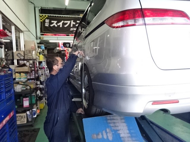 エリシオンのお客様、車検でショックアブソーバーのオイル漏れ発覚