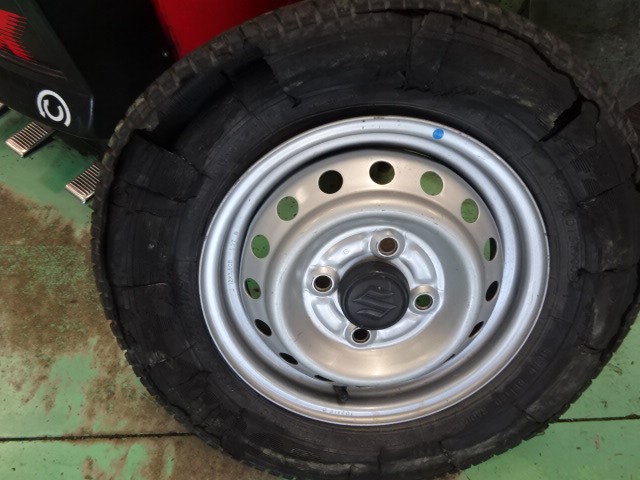 ハイブリッドトラック突然のタイヤバーストでご来店