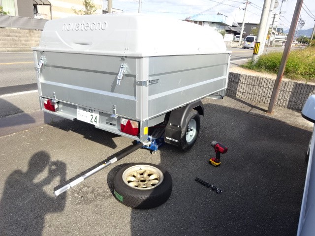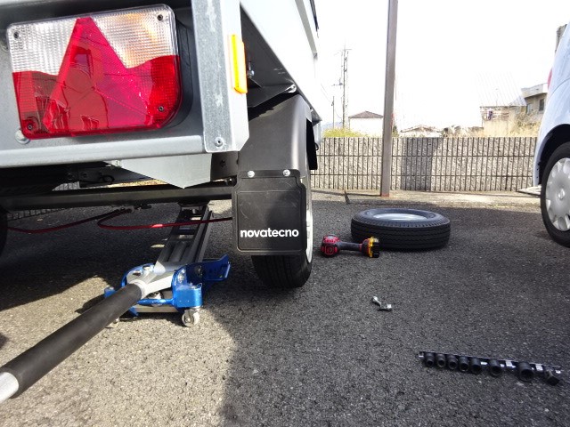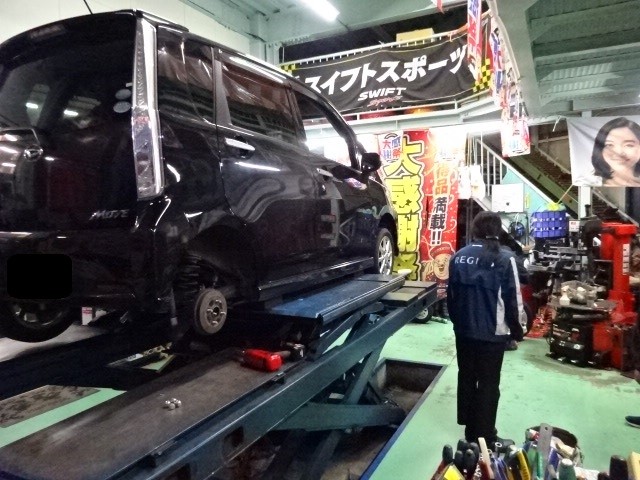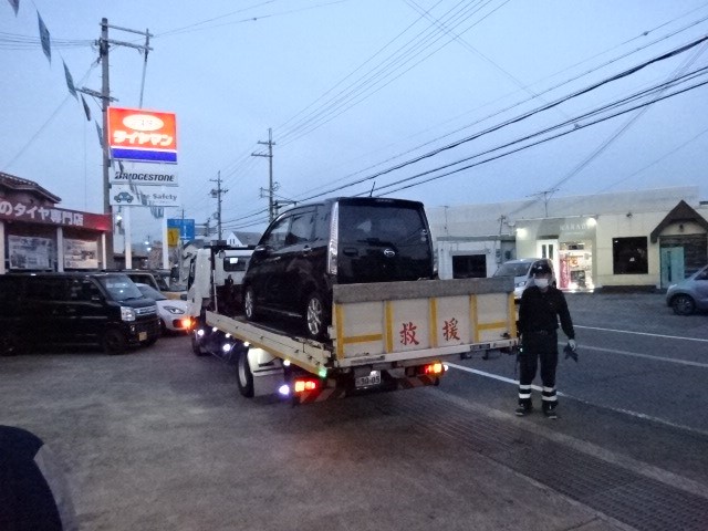 夕方ムーブがパンクでロードサービスにて運ばれて来ましたよ。