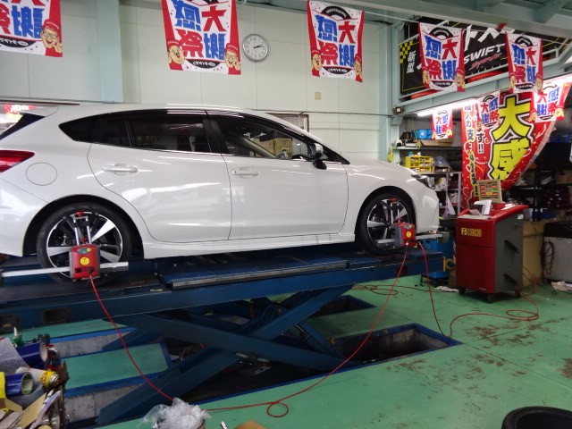 業者様からの依頼で、事故車修理のインプレッサのアライメント調整です。