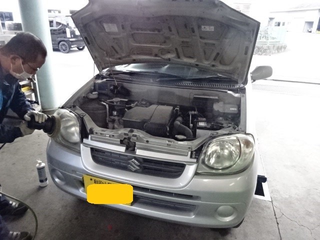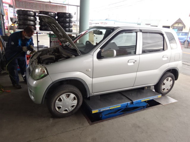 Keiの車検整備ですが、このお客様は、ご自身で継続検査行くのですが、その前に点検と整備を依頼されました。