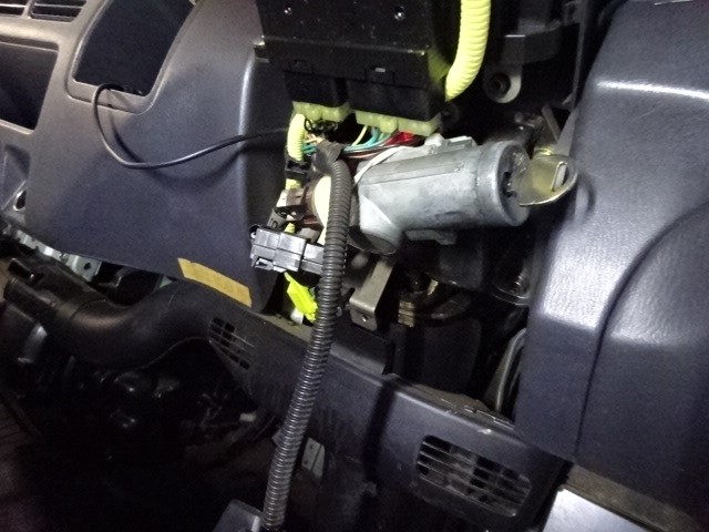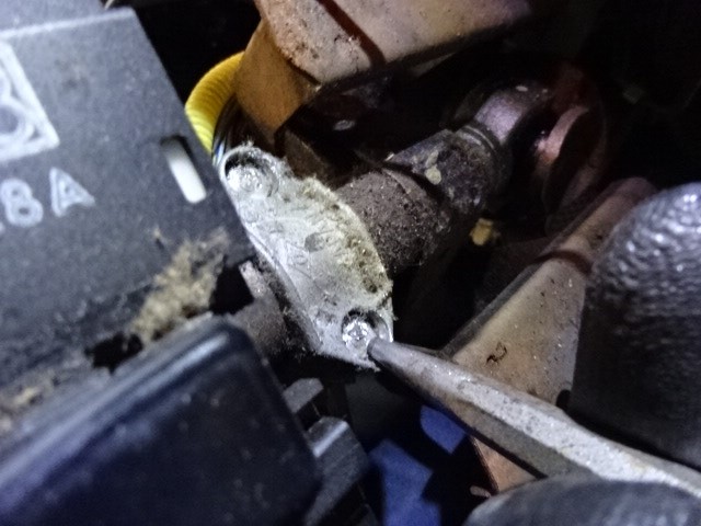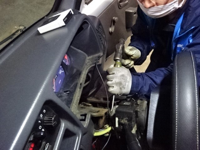 ここからが大変です。ステアリング落として、シリンダーの取り付けボルトを外さなくては、ならないのでが・・・