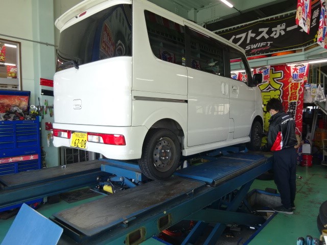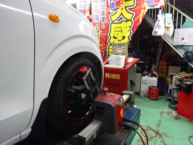 先日タイヤ交換した、アルトバン異常摩耗していたので、アライメント調整を、お勧めした所