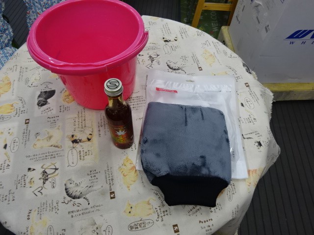 先ずは、汚れ落とし その後100倍に薄めたスパシャンを専用パットで洗車するだけ