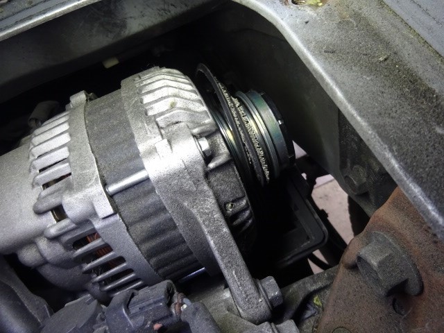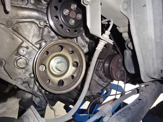 また、カバー外して診ると、クランクプーリーシールから漏れ漏れ