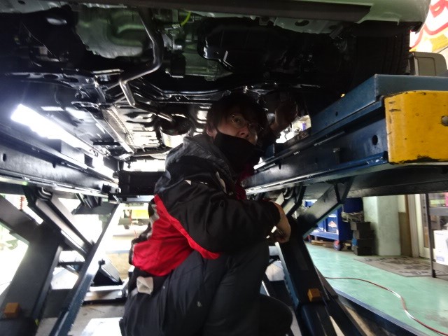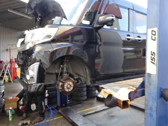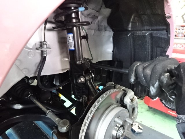 メンバーにサスペンション全て新品なのですが、左右で、キャンバー角の差が有ったので、各部のネジを緩めて、補正して締め付けていきます。