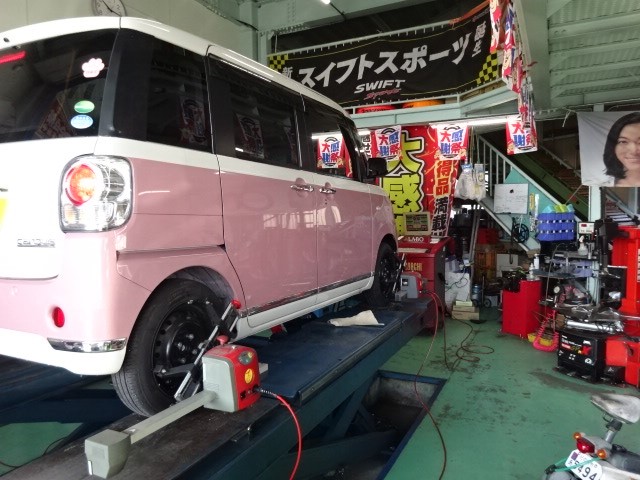 業者様からの依頼で、事故のキャンバスのアライメント調整ですが、右フロントにダメージが残っていました。