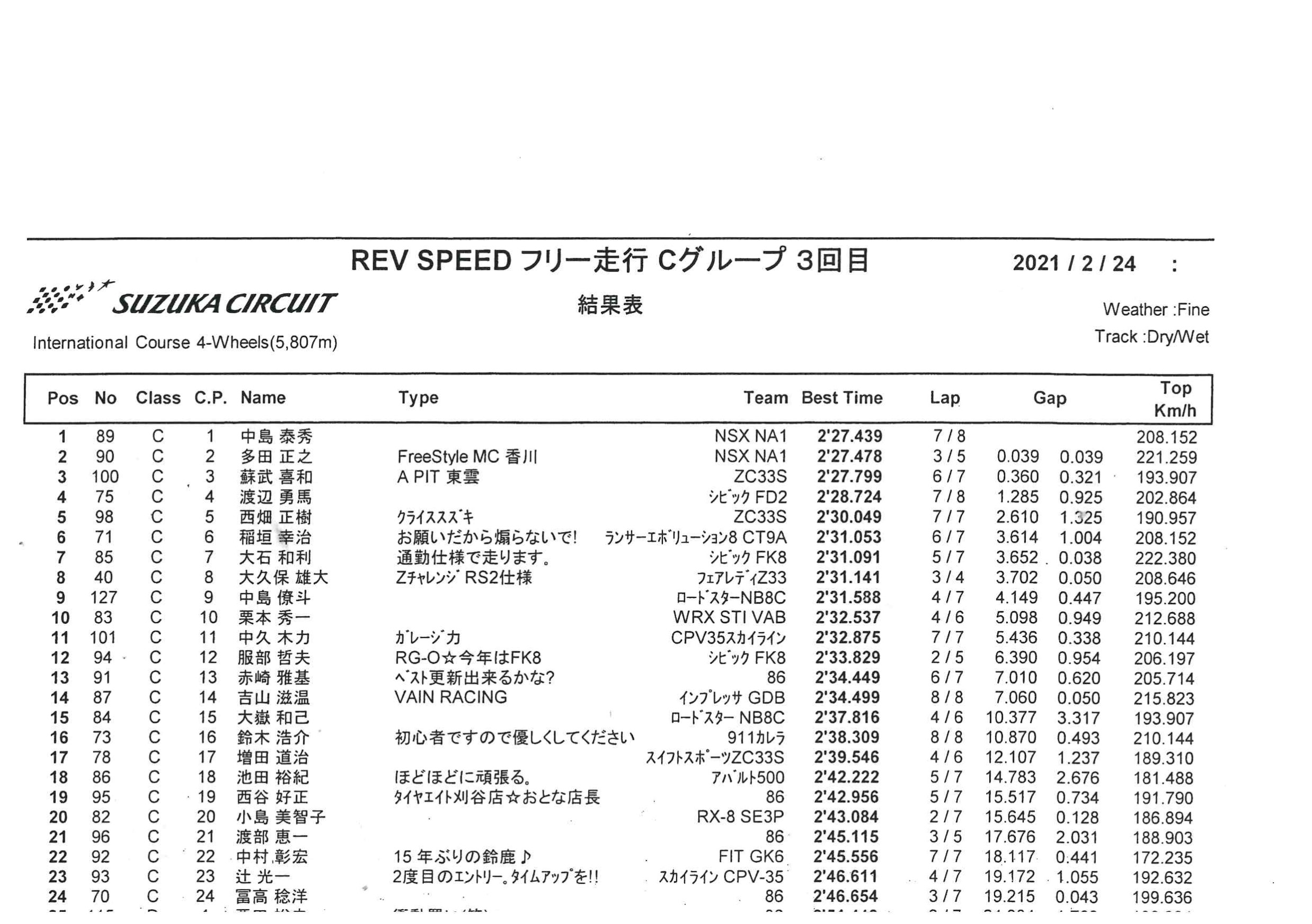 2月24日REVSPEED鈴鹿サーキットミーティングに参加しました。