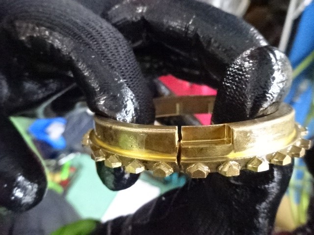 いつも1速のシンクロナイザーリングの、この切り欠きの部分で割れます。